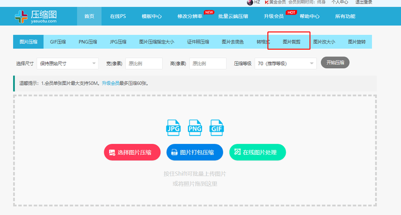 1、打开压缩图网站,点击图片裁剪。